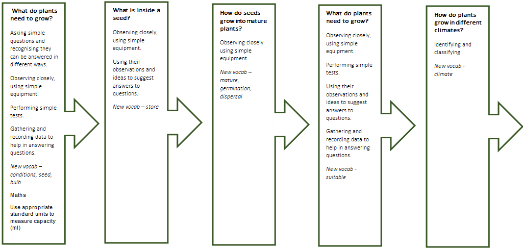 As pupils progress they will build up an extended specialist vocabulary. Pupils will learn to use a variety of approaches to answer scientific questions, including, observing over time, pattern seeking, identifying, classifying and grouping, comparative and fair testing and researching.