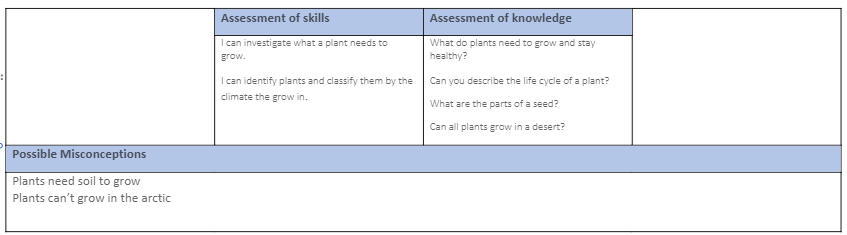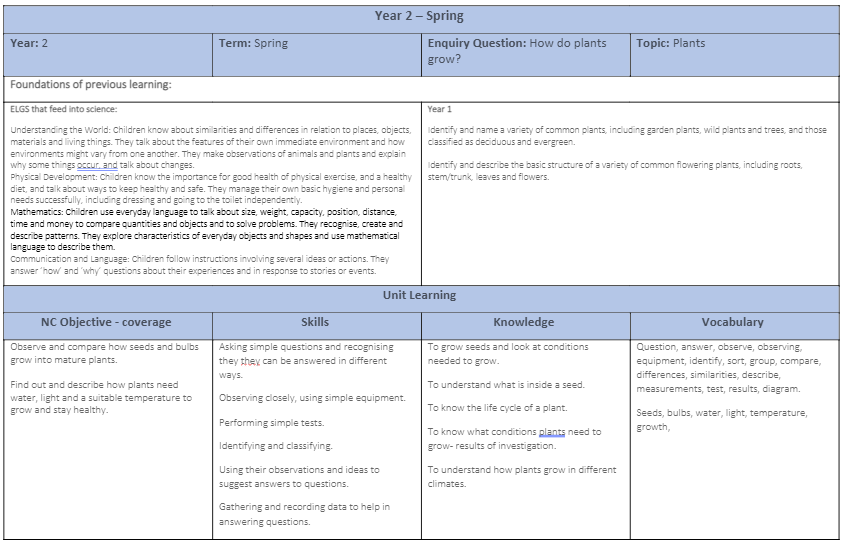 For each unit of work, we have created an overview of skills, knowledge and vocabulary. Please see the example below.